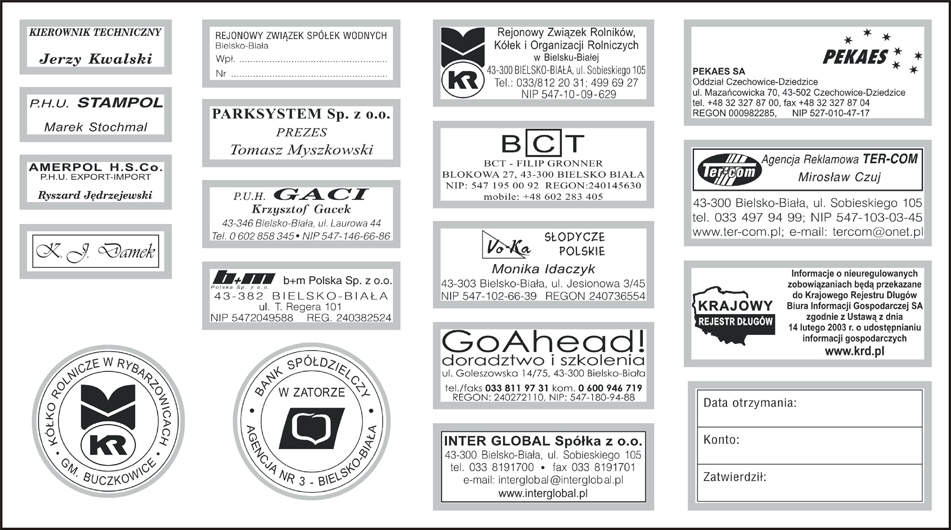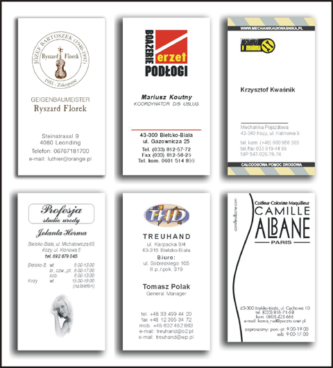 PIECZĄTKI, WIZYTÓWKI - realizacje, przykłady